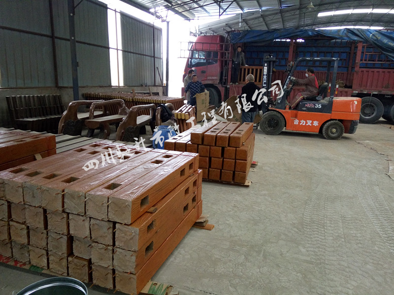 201611月初,我司承接的甘肅省隴南市鄉村建設《仿木欄桿》、《仿樹皮垃圾桶》、《生態光皮椅》、《仿樹皮桌凳組合》、《仿半圓樹皮凳子》已安排發貨!